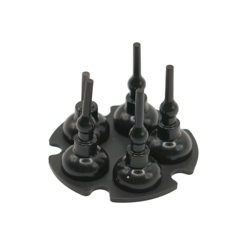 Ini adalah diafragma karet lima port. Itu dibuat dari EPDM. Ini fitur struktur terintegrasi dari dasar berbentuk kipas + 5 diafragma silinder independen. Setiap diafragma silinder terdiri dari "alas hemisfer bawah + bagian transisi berbentuk labu tengah + batang ramping atas". Tepi alas dirancang dengan klip/alur pemasangan untuk memudahkan perakitan. Permukaannya halus dan mengkilap, bebas dari gerinda dan cacat. Kekerasannya 60–65°. Ini menggabungkan ketegangan elastis dengan kekakuan struktural. Setiap set diafragma mempertahankan bentuk yang teratur. Komponen silinder disusun secara seragam. Hal ini memungkinkan penyematan yang tepat ke dalam posisi pemasangan multi-antarmuka pada pompa. Sebagai komponen kontrol cairan inti untuk sistem dosis mikro, komponen ini mematuhi standar ketat dari Pompa Diafragma Tertutup dan Pompa Transfer Cairan Tertutup. Ini sepenuhnya kompatibel dengan persyaratan aplikasi Rakitan Piston Presisi dan Komponen Piston Hidraulik.